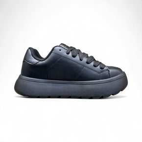 Modern chunky white sneaker featuring a minimalist design with smooth synthetic leather upper and thick geometric sole. The shoe offers a contemporary streetwear look with tonal laces, cushioned collar,...