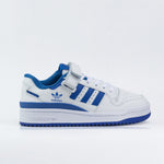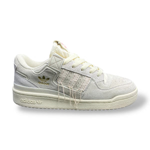 The Adidas Forum Low All White is a stylish sneaker that combines retro '80s elements with modern comfort. This model is inspired by classic basketball shoes, featuring a low-cut silhouette crafted from durable leather. It includes iconic design elements such as the ankle X-strap for a secure fit and a coated leather upper with overlays that enhance its dynamic look. The all-white colorway adds a clean and versatile touch, making it suitable for various outfits.