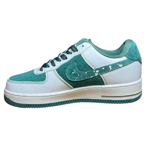 A classic Nike model featuring a black Swoosh, white leather, and suede accents on the toe.