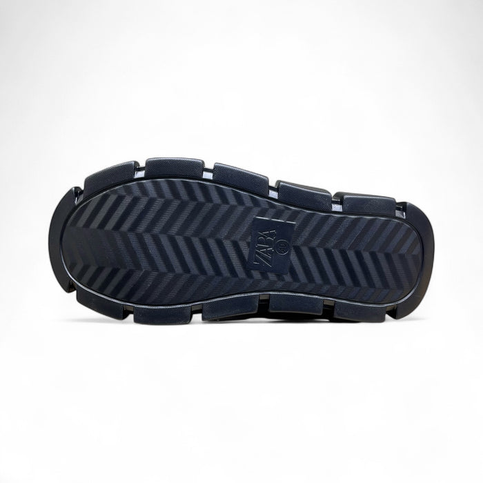 Trendy white chunky sneaker with a textured synthetic leather upper and perforated side detailing. Designed with thick rope-style laces and a bold block-pattern outsole for a statement streetwear look. Features padded ankle support and elevated platform sole for comfort and modern urban style.